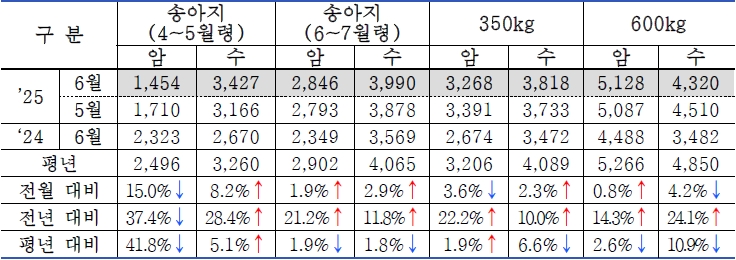 | □ 2025년 6월 2차(6.16. ~ 6.30.) 한우 가격 동향 |