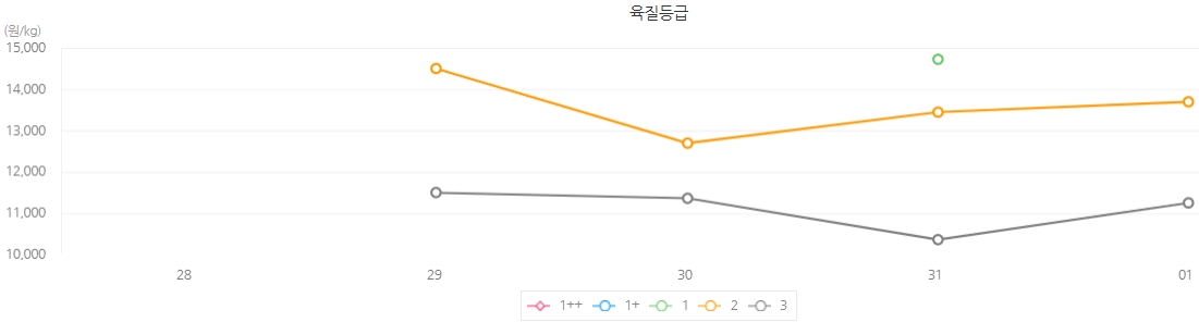 육질등급 | 육량등급 | 전체 | 등락 | ||||||