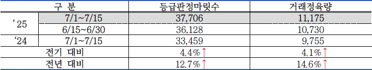 | □ 2025년 7월 1차(7.1. ~ 7.15.) 한우 수급 동향 |