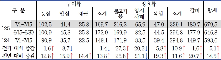 | □ 2025년 7월 1차(7.1. ~ 7.15.) 한우 식육포장처리업 동향 |