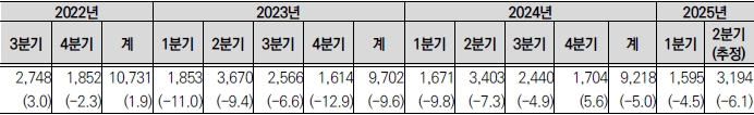 주 1) ( ) 안은 전년 동기 대비 증감률(%)