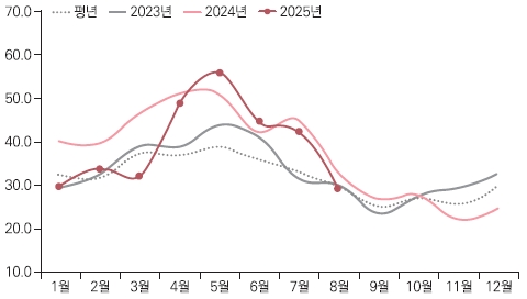 주: 평년은 최근 5개년(2020~2024년)의 최대, 최소를 제외한 평균임.