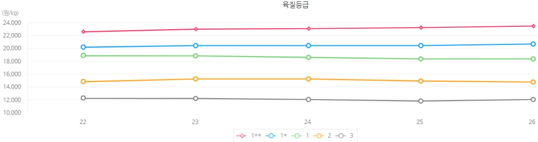 육질등급 | 육량등급 | 전체 | 등락 | ||||||