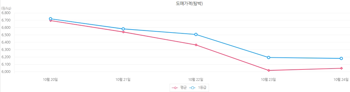 | 구분 | 평균(원/kg) | 1등급(원/kg) |