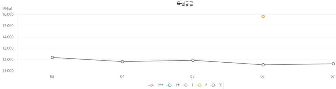 육질등급 | 육량등급 | 전체 | 등락 | ||||||