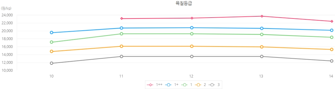 육질등급 | 육량등급 | 전체 | 등락 | ||||||