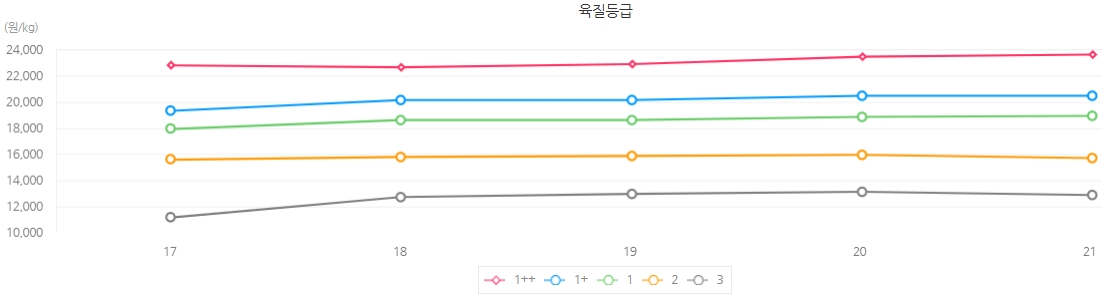 육질등급 | 육량등급 | 전체 | 등락 | ||||||