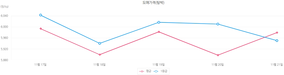 | 구분 | 평균(원/kg) | 1등급(원/kg) |
