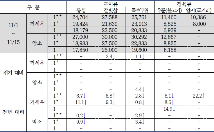 | 2025년 11월 1차(11.1. ~ 11.15.) 한우 가격 동향 (0) | 2025.12.05 |