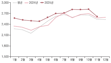 주1) 평년은 최근 5개년(2020~2024년)의 최대, 최소를 제외한 평균임.