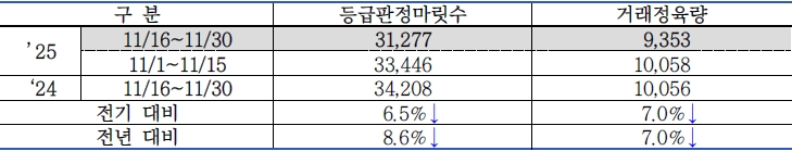 | □ 2025년 11월 2차(11.16. ~ 11.30.) 한우 수급 동향 |