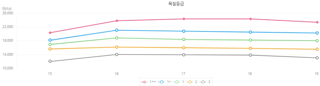 육질등급 | 육량등급 | 전체 | 등락 | ||||||