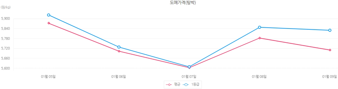 | 구분 | 평균(원/kg) | 1등급(원/kg) |