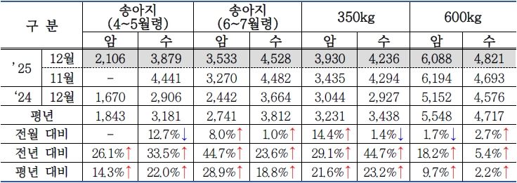 | 2025년 12월 2차(12.16. ~ 12.31.) 농협 4대 공판장 한우 수요 동향 및 전망 (0) | 2026.01.16 |