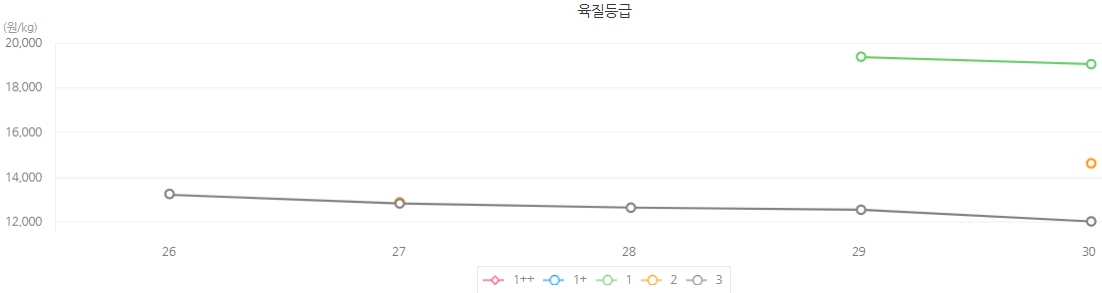 육질등급 | 육량등급 | 전체 | 등락 | ||||||