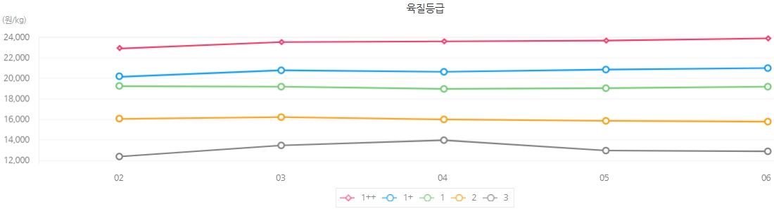 육질등급 | 육량등급 | 전체 | 등락 | ||||||