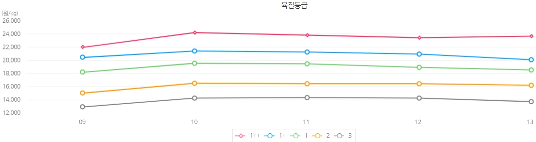 육질등급 | 육량등급 | 전체 | 등락 | ||||||