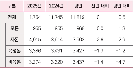 □ 2025년 12월 돼지 사육마릿수 전년 수준