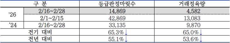 | □ 2026년 2월 2차(2.16. ~ 2.28.) 한우 수급 동향 |