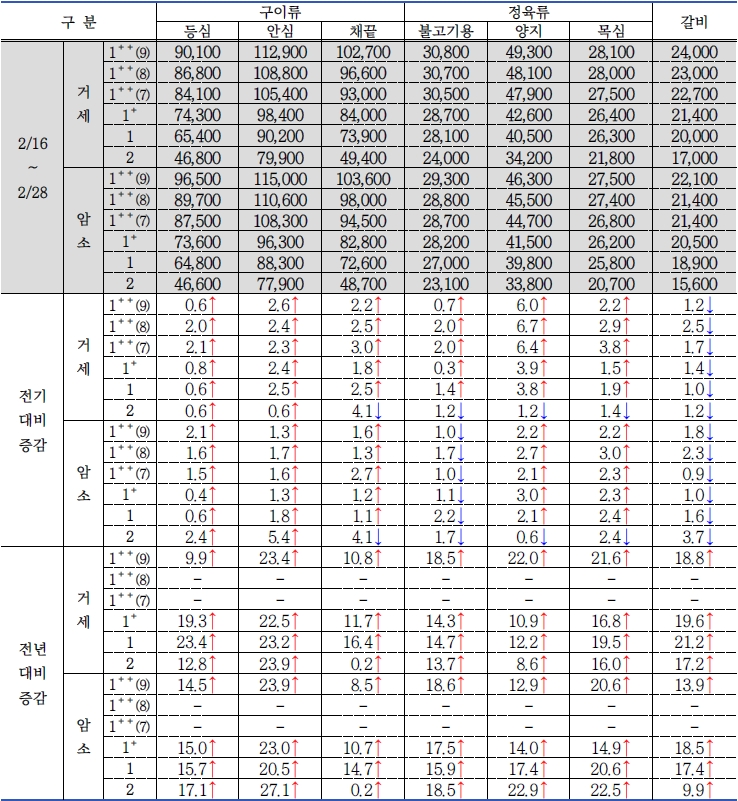 | 2026년 2월 2차(2.16. ~ 2.28.) 한우 가격 동향 (0) | 2026.03.17 |