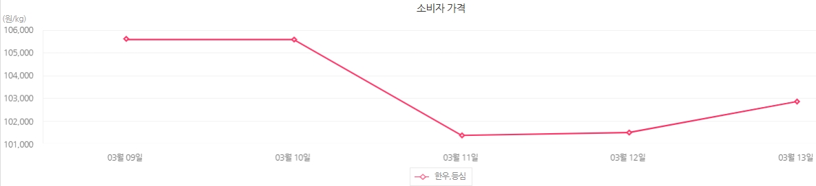 | 한우 도매가격 2026년 3월 3주차 동향(3월 9일 ~ 3월 13일) (0) | 2026.03.17 |
